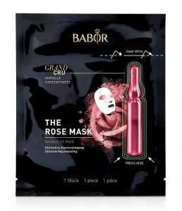 Die Maske für anspruchsvolle Haut enthält als einzige eine schwarze Charcoal-Maske, die die edlen Ampullenwirkstoffe besonders gut einziehen lässt. Für den Boost ist das kostbare Öl aus der Damaszener Rose verantwortlich. So reduziert die Maske die Faltentiefe mit Sofort-Effekt und lässt die Haut wie regeneriert erscheinen. Hyaluronsäure spendet zusätzlich intensiv Feuchtigkeit. Während der Einwegzeit verwöhnt die Maske mit einem süß-blumigen Duft die Sinne.