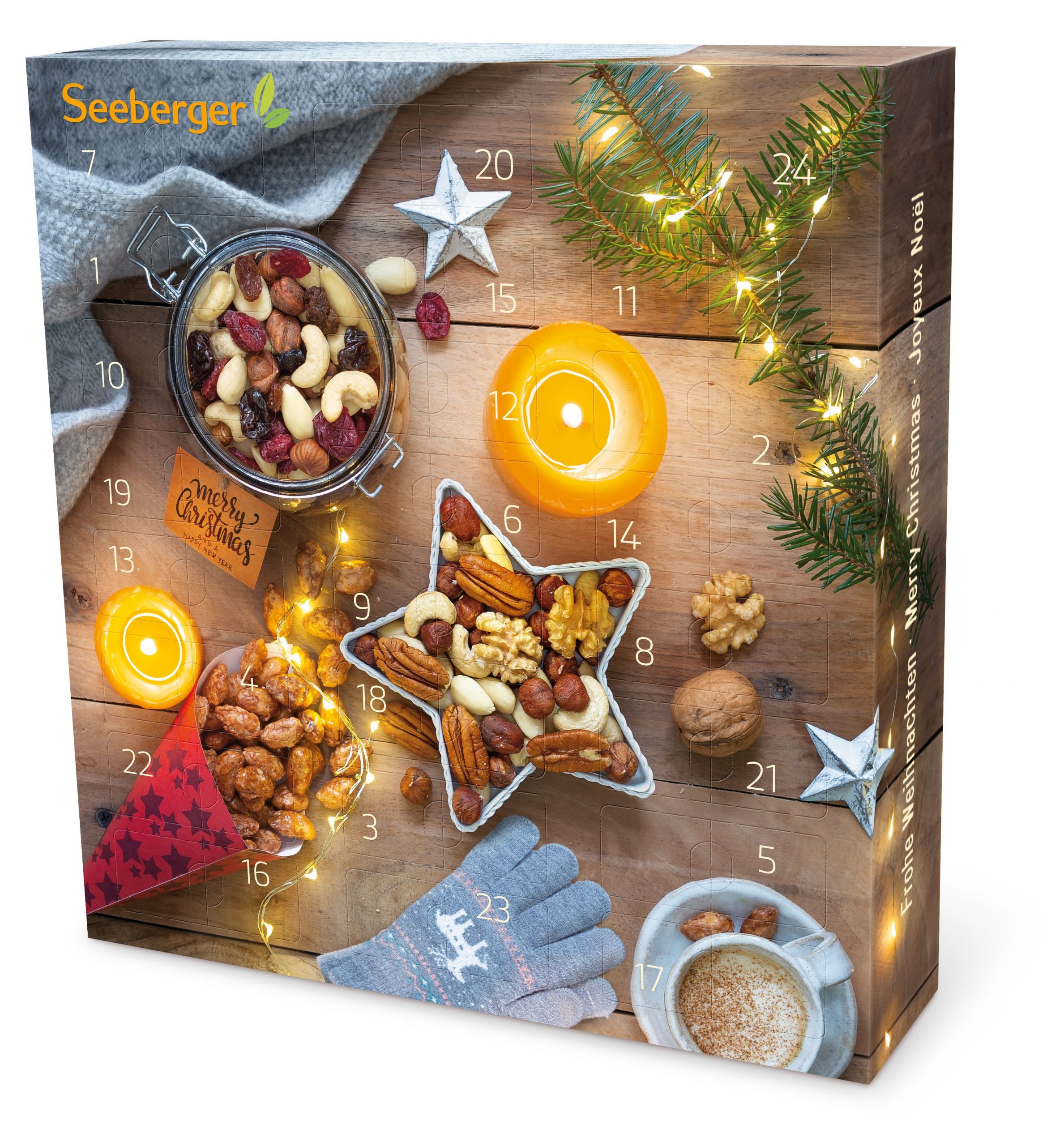 Jahr wieder eine gesündere und abwechslungsreiche Alternative zum gewöhnlichen SchokoKalender. Der Seeberger Adventskalender begeistert nicht nur mit 24 genüsslichen Seeberger-Produkten, sondern auch mit einer neuen, nachhaltigen Verpackung und kreativen DIYIdeen für eine genüssliche und bewusste Weihnachtszeit.