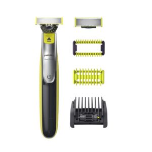 Die elektrische doppelseitige Klinge des OneBlade ermöglicht die Rasur nach oben und nach unten, sodass du Kanten stylen und saubere Linien kreieren kannst. Doch dein Gesicht ist einzigartig und Dank der neuen 360-Grad-Klinge passt sich diese noch mehr als je zuvor an deine individuellen Gesichtskonturen an. Dabei gleitet OneBlade über deine Haut, ohne dass die Klinge sie direkt berührt, was die Rasur sicher und schonend macht. OneBlade wird außerdem mit einem verstellbaren 5-in-1-Kamm geliefert, mit dem du mühelos zwischen fünf Rasierlängen wechselst. So benötigst du nicht mehr verschiedene Rasierer-Tools im Bad, sondern nur noch einen einzigen. Du kannst trimmen, rasieren und stylen, ohne deine Routine zu unterbrechen, selbst bei langem und dickem Barthaar.