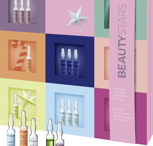 Beauty Stars Adventskalender Eine große Bühne erhalten ab September wieder die DR. GRANDEL Ampullen im diesjährigen Beauty Stars Adventskalender. Hinter den 24 Türchen: Besondere Texturen, wertvolle Ingredienzien und eine prächtige Farbvielfalt für unvergessliche Verwöhnmomente im Advent. Das Design des aufklappbaren ...