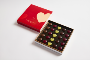 Box mit Herz-Ganaches und Pralinen
