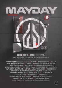 Am 30. April 2025 findet in den Dortmunder Westfalenhallen MAYDAY, der größte deutsche Indoor-Rave, statt. In diesem Jahr steht die Veranstaltung unter dem Motto „progress“. I-Motion veröffentlicht nun das vollständige LineUp zur 39. Ausgabe, in dem bekannte Künstler und Szene-Größen wie Richie Hawtin, Reinier Zonneveld, Lilly Palmer, 999999999, Chris Liebing, sowie zahlreiche aufstrebende Talente vertreten sind.Eines der ersten Mottos von MAYDAY war 1992 ‛Forward ever – Backward never‘. Seitdem befindet sich MAYDAY in einer stetigen Weiterentwicklung. Es gab zu keinem Zeitpunkt einen Stillstand, sondern einen permanenten Prozess des Fortschritts. Das drückt sich im diesjährigen Motto „progress“ aus. Oliver Vordemvenne von I-Motion erklärt: „Mit dem Motto ‛progress‘ betonen wir die stetige Entwicklung von MAYDAY in allen Bereichen, sei es in der Musik, Technik oder dem Design.“