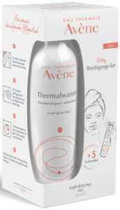 - Das Gesicht mit dem Avène Thermalwasser besprühen.