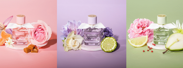 MUSTANG WILD BLOSSOM FOR HER Die Flakons fangen die Leichtigkeit der Natur in ihrem Design ein: Zarte Farbnuancen in Grün, Flieder und Rosé spiegeln die drei Duftwelten wider. Am oberen Rand jedes Glases zeichnet sich eine filigrane Blütenstruktur ab, als ...