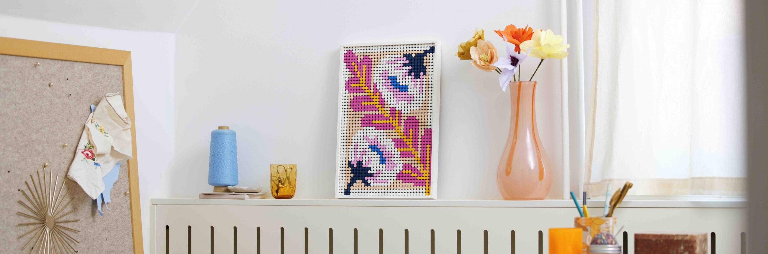 Was wäre eine Homestory ohne den Blick auf die Details? Besonderer Blickfang sind Bilder an den Wänden, die mit dem LEGO Art Set Blumenkunst für florale Gemütlichkeit sorgen. Beim Zusammenbauen kann man zwischen drei verschiedenen Motiven wählen und es so immer wieder nach Lust und Laune ändern. So gelingt der Tapetenwechsel in den eigenen vier Wänden ganz unkompliziert und ohne ...