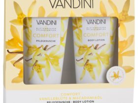 VANDINI COMFORT Geschenkset Duo Das VANDINI COMFORT Duo Set für trockene, anspruchsvolle Haut besteht aus einer COMFORT Pflegedusche und einer reichhaltigen COMFORT Body Lotion. Die Pflegeprodukte in diesem Set sind mit Vanilleblütenwasser, Macadamiaöl und COMFORT-Komplex angereichert und unterstützen die Regeneration der Haut. Sinnlicher Vanilleblütenduft rundet das Wellness-Erlebnis harmonisch ab VANDINI COMFORT Geschenkset Duo / 2 x 200 ml / 8,99 ...